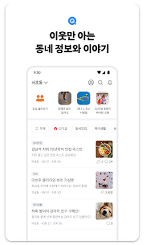 동네 맛집, 카페 추천부터 분실물 찾기까지, 궁금한 것이 있다면 언제든 이웃에게 물어볼 수 있습니다. 공감과 댓글로 서로의 정보를 공유하며 따뜻한 이웃 관계를 만들어갈 수 있죠.